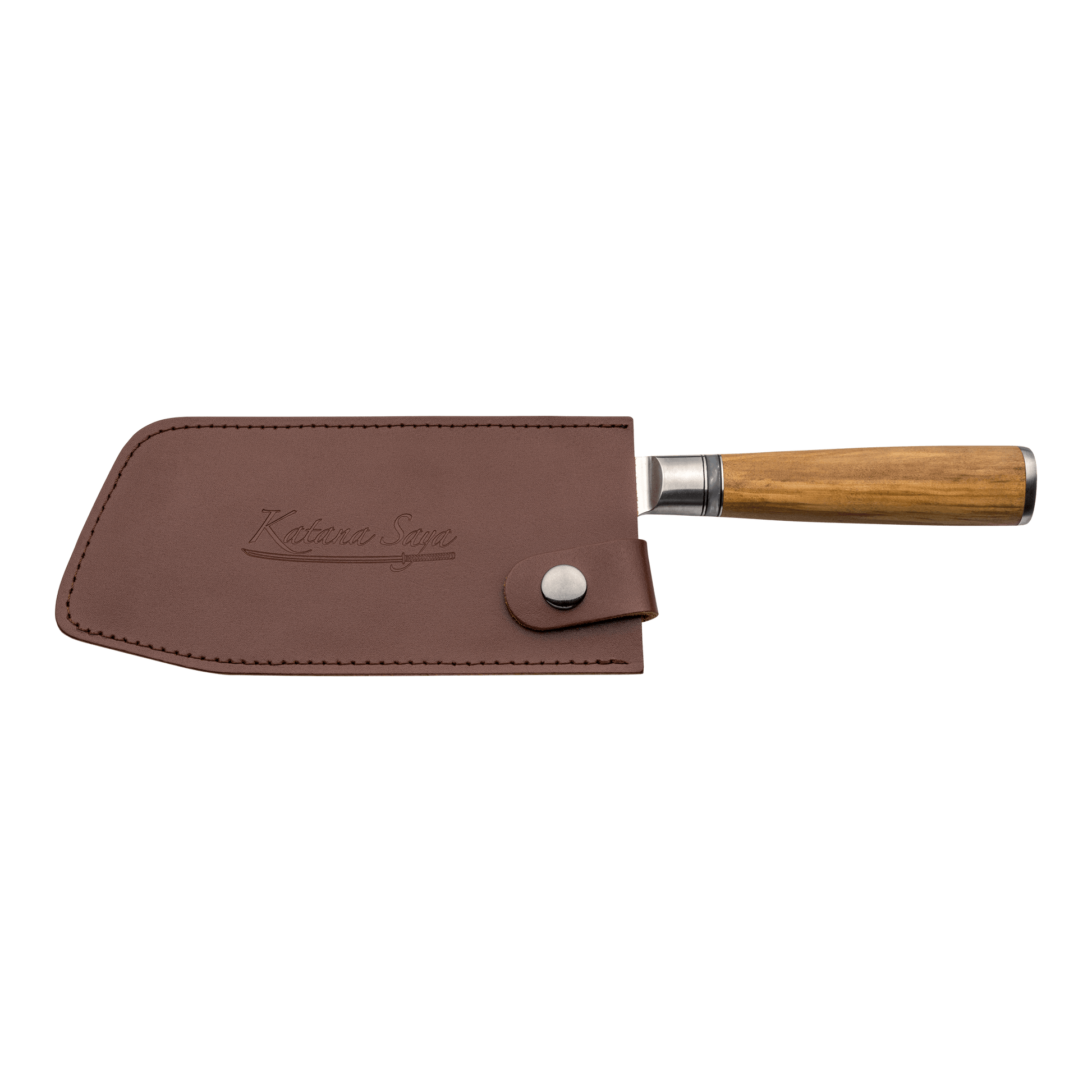 Not to be confused with the butcher’s cleaver, the chopping knife or ‘Chinese Chopper’ is a knife inspired by ones traditional in China. The Katana Saya Olive wood 18cm Chopping Chopper is the perfect tool for the preparation of large vegetables and when handled properly can be both a delicate and quick tool for chopping. This knife is not recommended for butchering and jointing large pieces of meat.