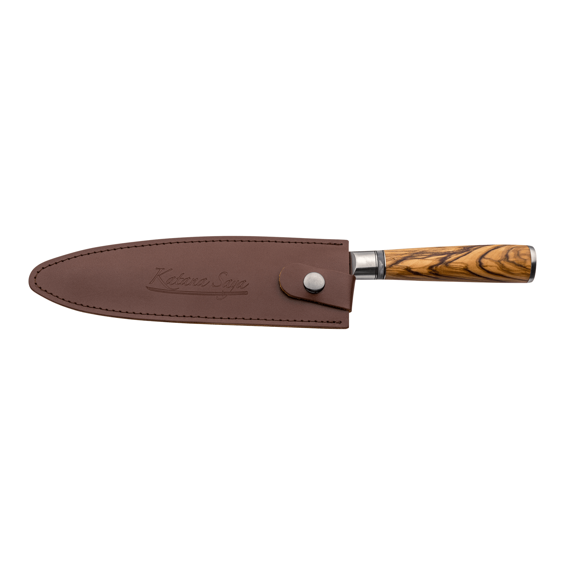 The classic all-rounder, the Chef’s Knife can be used for almost any task in the kitchen. This Katana Saya Olive wood 20cm Chef's Knife is great for chopping and slicing vegetables with speed, but just as comfortable jointing and filleting meat and fish with ease. The long, sharp blade with a pointed tip is one of the most popular across the world and is a kitchen essential for anyone who cooks! This version of the Chef's Knife is 20cm making it the largest in the range.