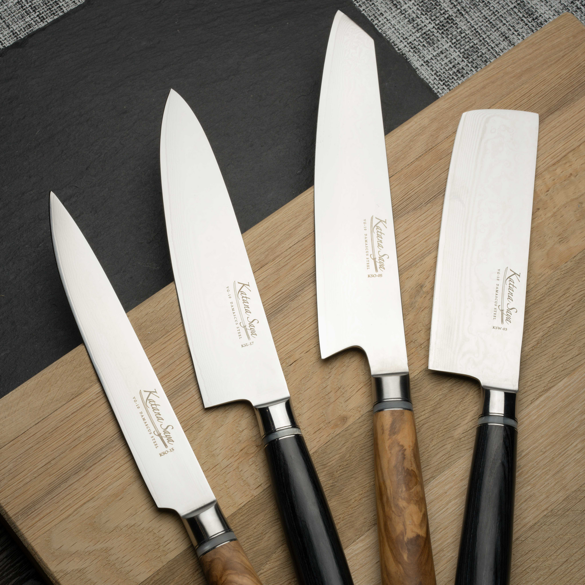 A brilliantly versatile knife, the Katana Saya Olive wood 24cm Kiritsuke Knife is capable of handling most kitchen tasks. Literally meaning 'split open' the Kiritsuke Knife is a multipurpose traditional Japanese knife, but is only found in the hands of well respected chefs and masters of the kitchen.