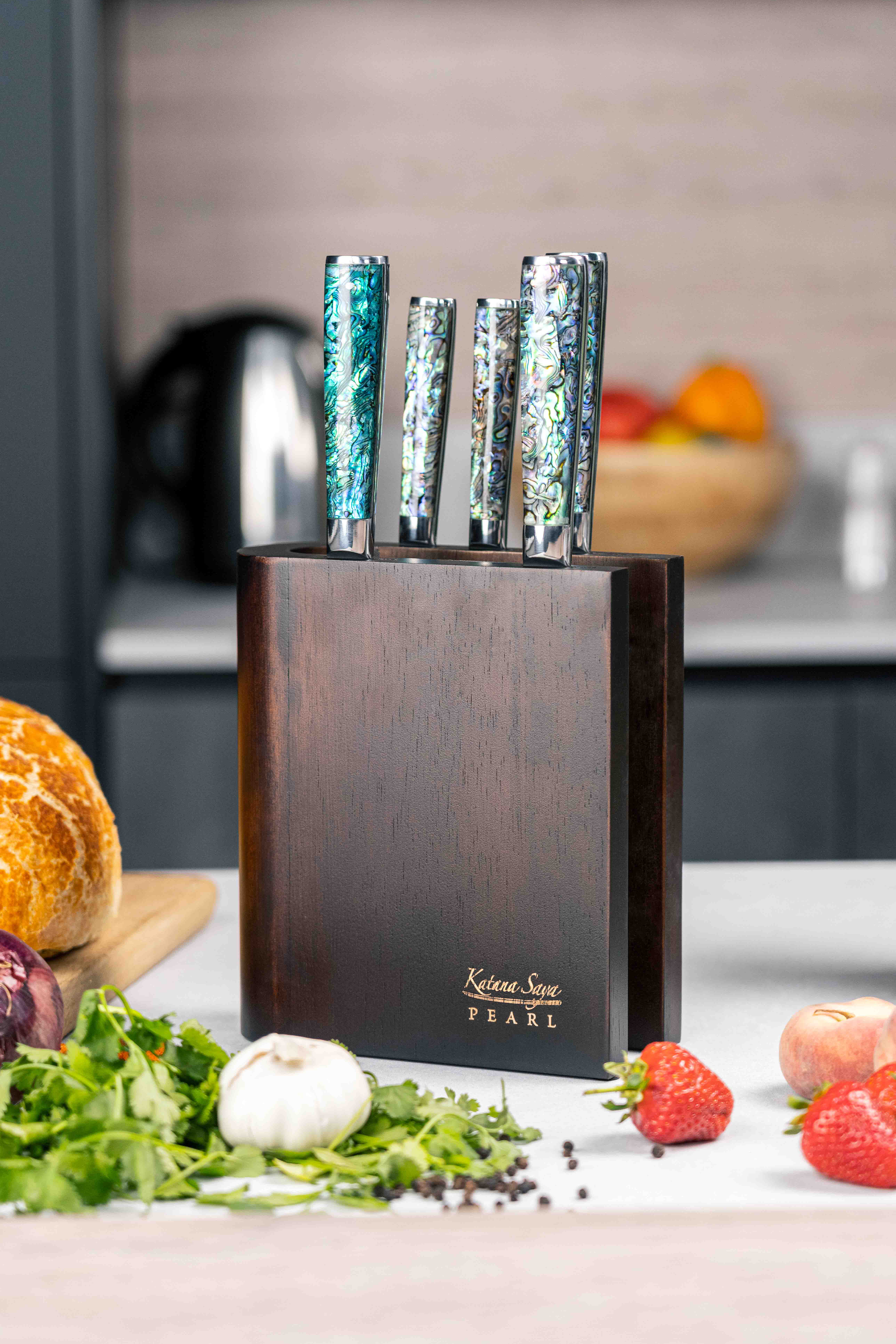 Both elegant and eye-catching, the handles in the Katana Pearl series evoke the mysterious beauty of marine life. The handles are inspired by the iridescent effect found inside abalone shells. A beauty that only the natural could conjure.