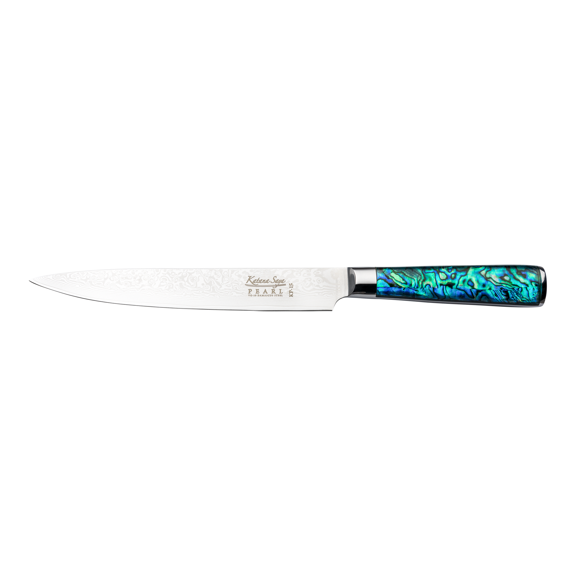 A backbone of Western cooking tradition, the Carving Knife is one of the most popular knives in most European homes. This Katana Saya Pearl 20cm Carving Knife is used for the carving of large joints of meat and is the perfect addition to your Sunday lunch. The long sharp blade enables long, smooth cutting strokes for beautiful presentation. The carving knife is 20cm long making it the optimum size for carving all types of joints.