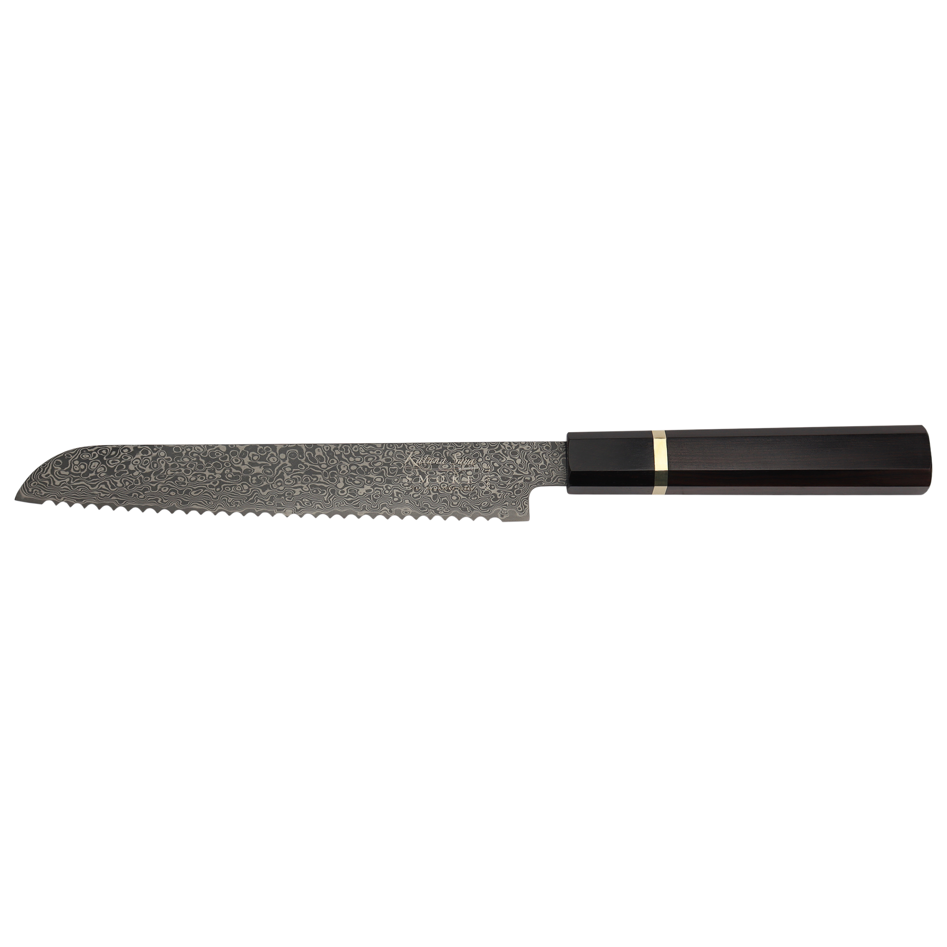 Katana Saya Smoke draws inspiration from long established traditions associated with Japanese blacksmiths to introduce this new collection. The luxurious black colour is created by an acid wash applied to the steel following the forging process. In addition to the beautiful black colour, this process adds to the rigidity of the steel and increases its corrosion resistance. The Black Damascus steel retains the superior quality expected from Katana Saya. The 67 Layers of VG-10 steel maintain a Rockwell Hardness Rating of HRC 60+2, a match for any premium kitchen knife. The mesmeric blade would not be complete without a handle of equal luxury. The dark Ebony wood is befitting of this knife’s quality. This hardwood, with a copper ferrule, not only looks striking, but feels robust and well balanced in the hand.